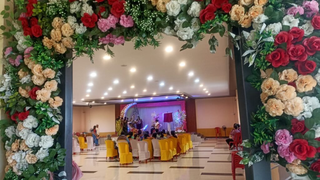 फंक्शन, वाढदिवस किंवा समारंभांसाठी स्टेज, लाइटिंग आणि फूलसजावटीचे पर्याय उपलब्ध.